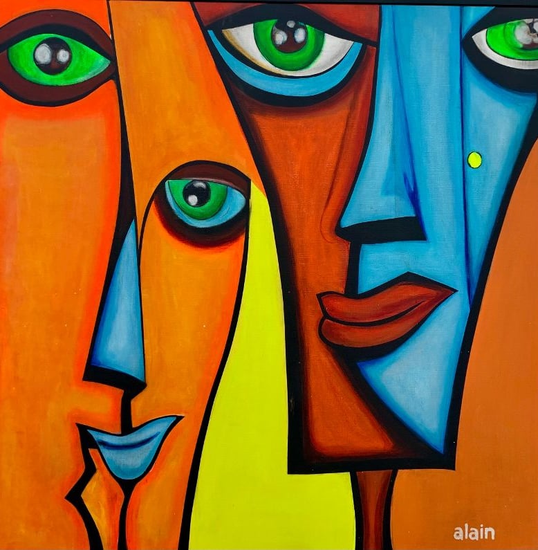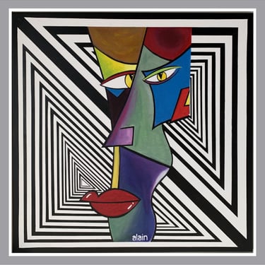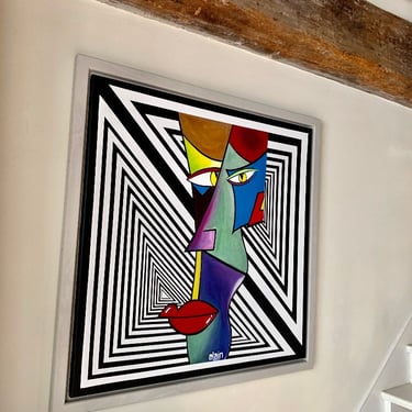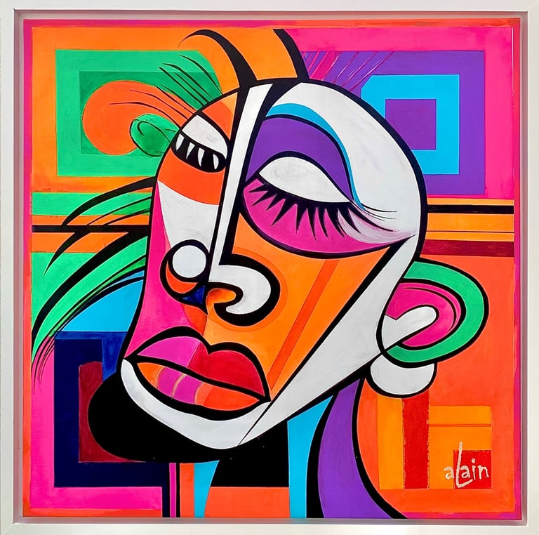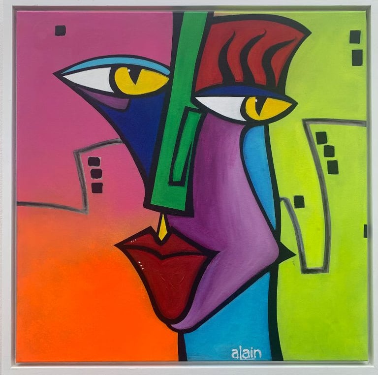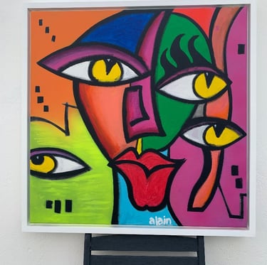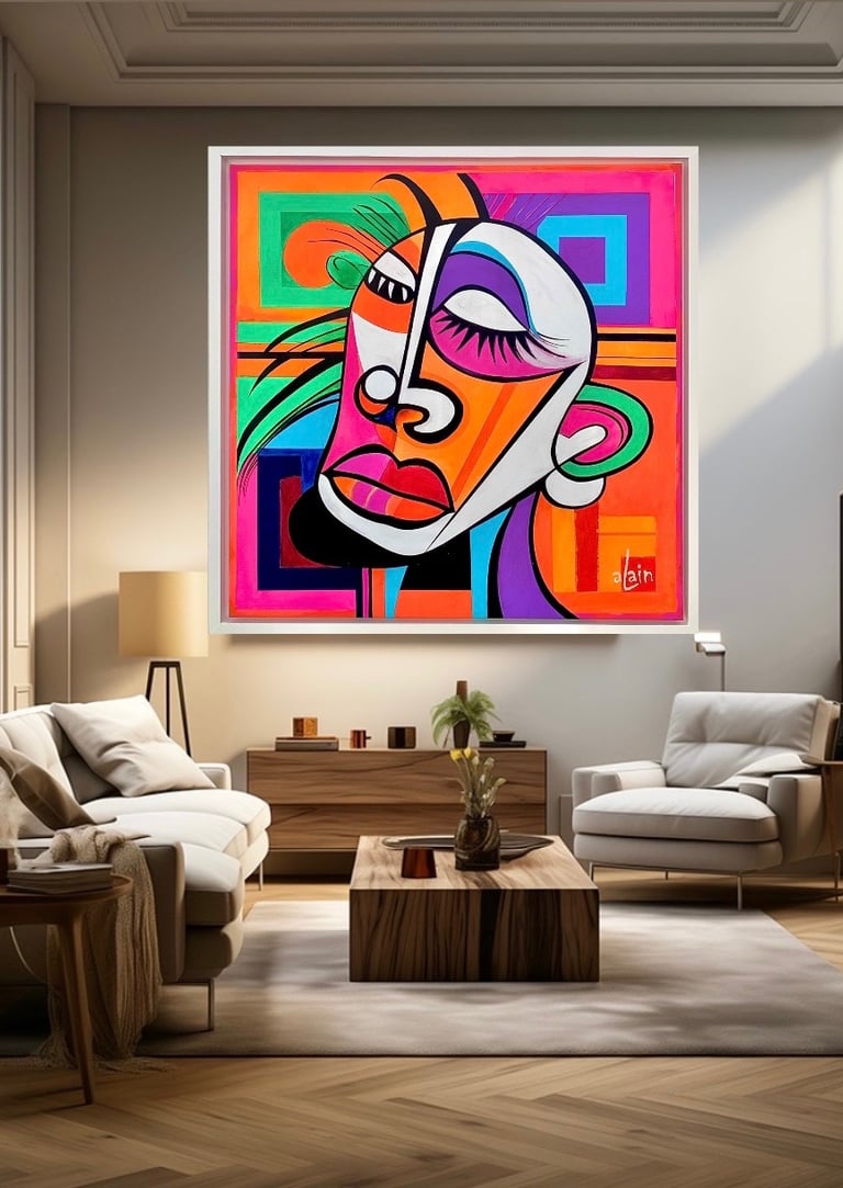 peinture a l'acrylique, modèle unique, toile en lin, encadrée, 80cm x 80cm,