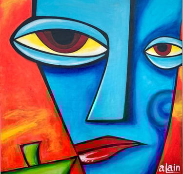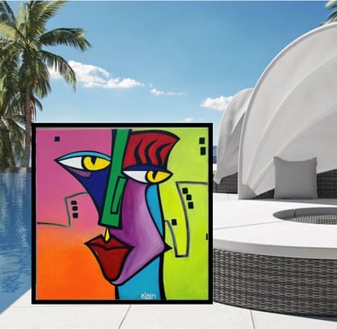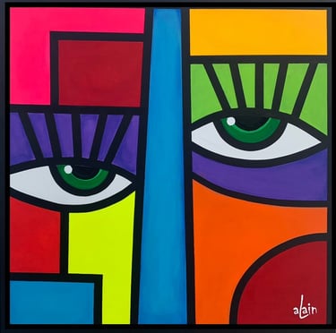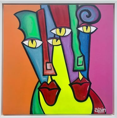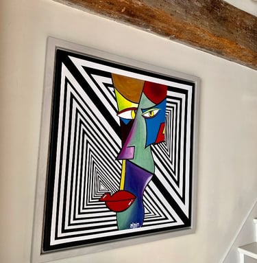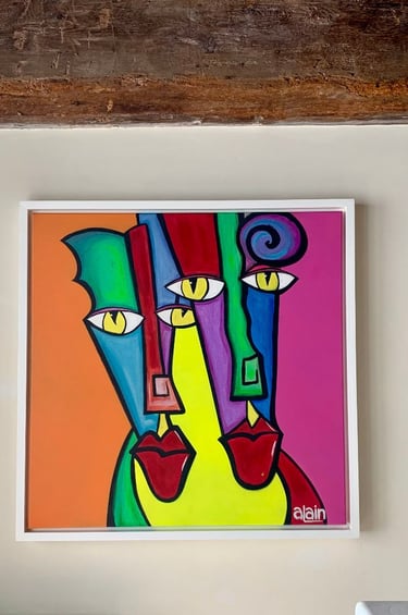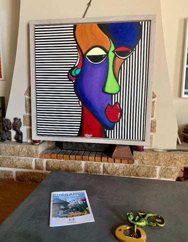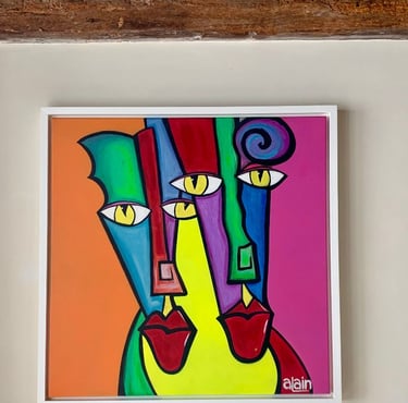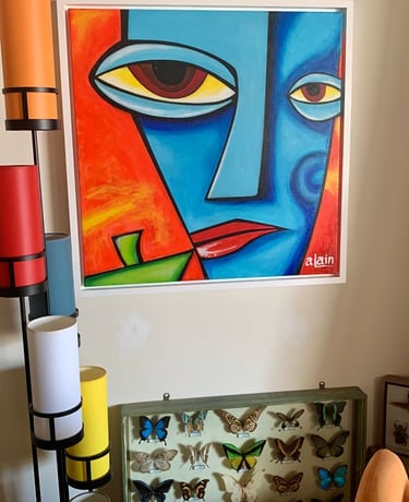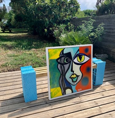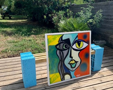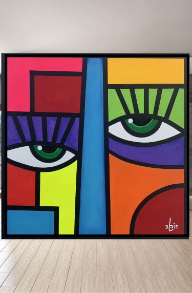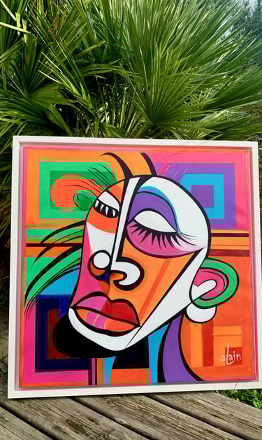 peinture a l'acrylique, modèle unique, toile en lin, encadrée 80cm x 80cm