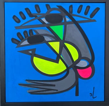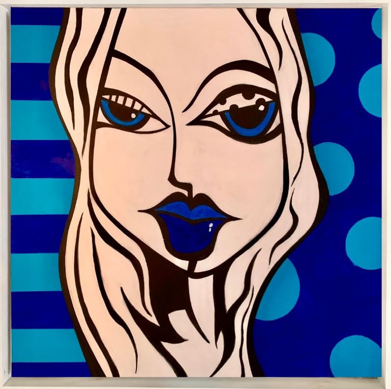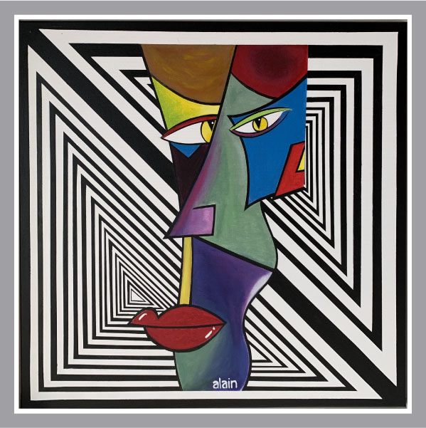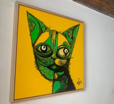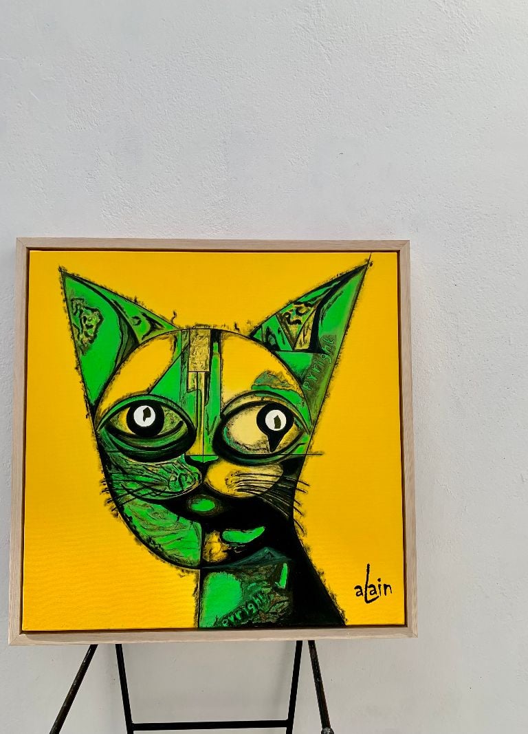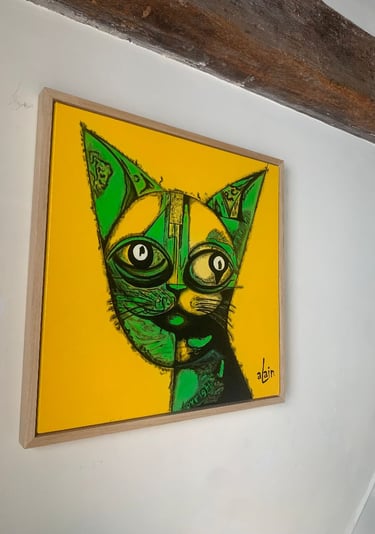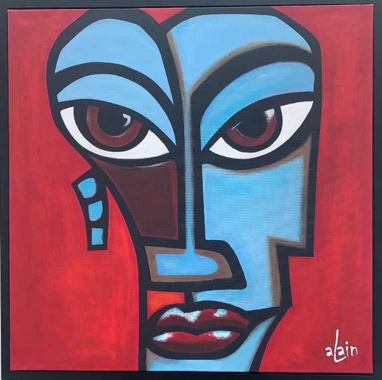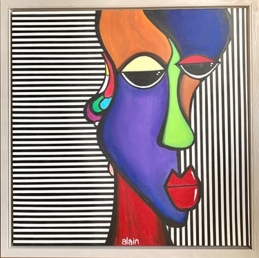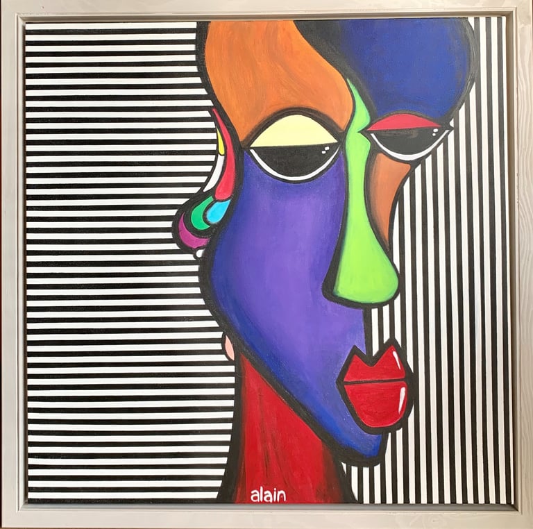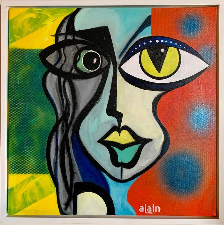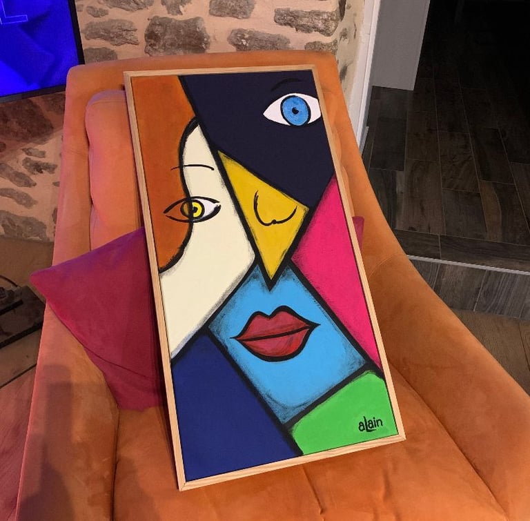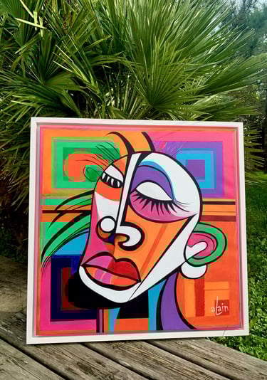 peinture a l'acrylique, modèle unique, toile en lin, encadrée : 60cm x 60cm