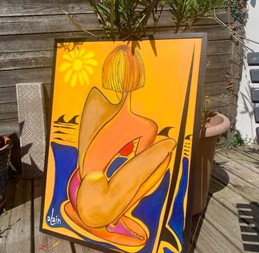 peinture a l'acrylique, modèle unique, toile en lin, encadrée, 90cm x 70cm