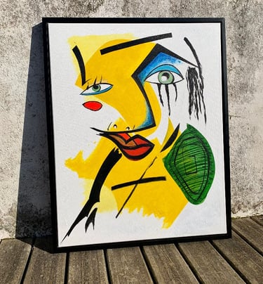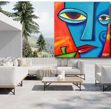 peinture a l'acrylique, modèle unique, toile en lin, encadrée 100cm x 80cm