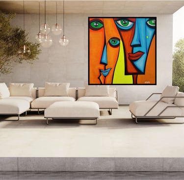 peinture a l'acrylique, modèle unique, toile en lin, encadrée, 90cm x 90cm