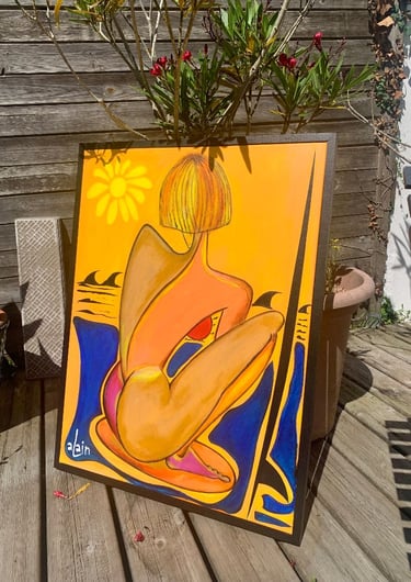 peinture a l'acrylique, modèle unique, toile en lin, encadrée, 65cm x 80cm