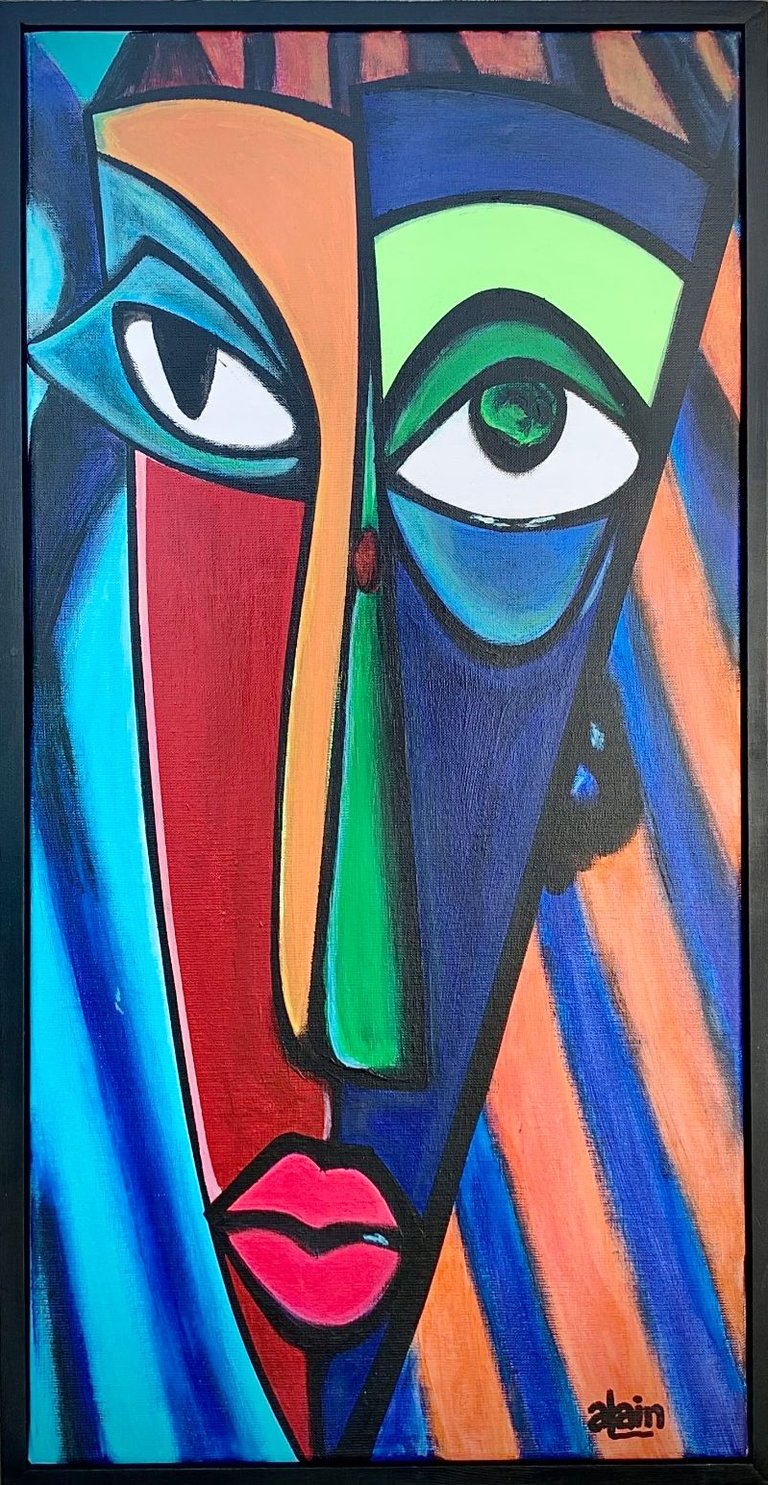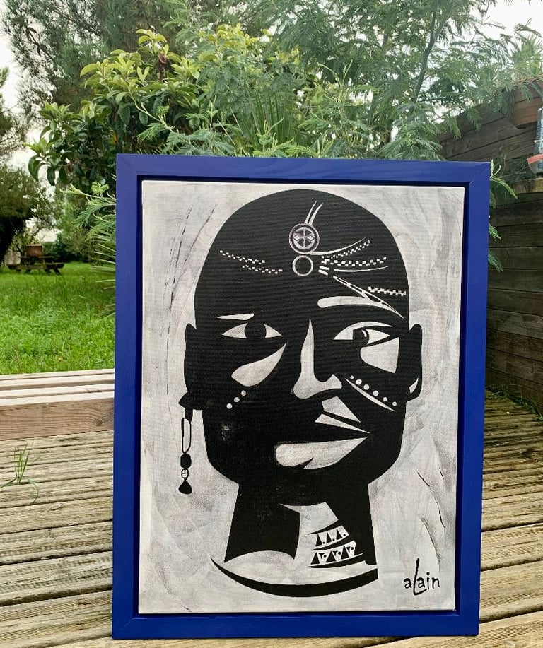 peinture a l'acrylique, modèle unique, toile en lin, encadrée, 70cm x 50cm
